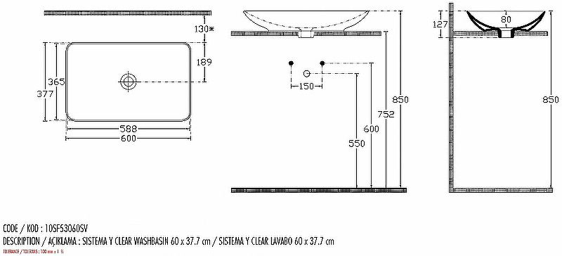 Монтаж: накладная на мебель (на столешницу).
