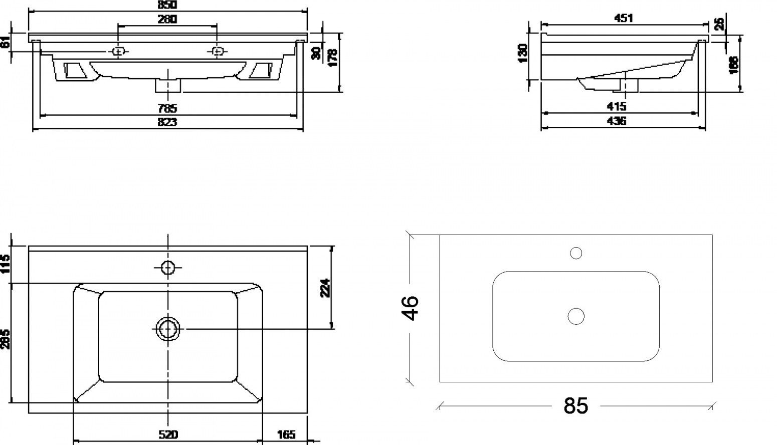 Мебельная раковина Armadi Art Capolda 85 очень стильная раковина с оптимальными размерами. Накладные раковины довольно молодое, но набирающее популярность направление дизайна раковин.Прямоугольная форма раковины Armadi Art Capolda оптимальных размеров: шириной 85 см, глубиной 46 см, высотой 16.6 см, способствует комфорту использования и монтажа. Современный стиль, в котором выполнена раковина Armadi Art 876-085 передается во всех элементах данной модели. Материалом, из которого произведена раковина 876-085 является полимерная керамика, данный материал отличается максимально гладкой поверхностью, и абсолютной гигиениченостью.Бренд Armadi Art, родиной которого, является Италия, выпускает раковины высочайшего качества с использованием безвредных для здоровья материалов. Мебельная раковина Armadi Art Capolda 85 обладает всеми необходимыми качествами для комфортного принятия ванных процедур.