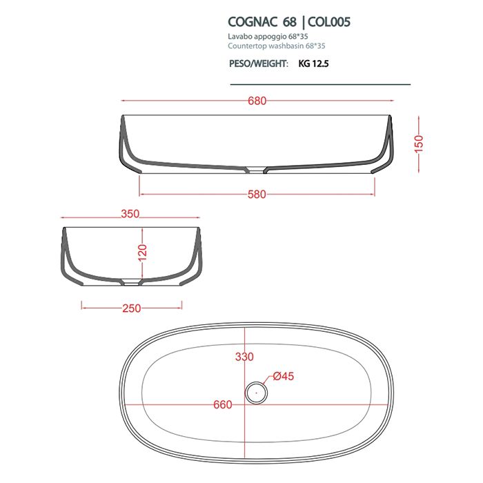 Раковина ArtCeram Cognac COL005 16 00 blue sapphire 68 смArtCeram COGNAC Раковина накладная , 68х35 см, без отв под смеситель, без слив-перелива, цвет blue sapphire