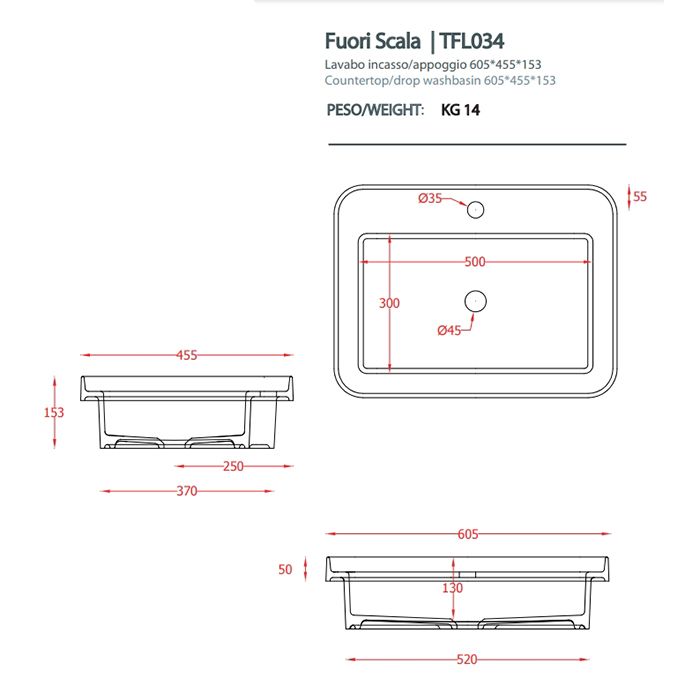 Раковина ArtCeram Fuori Scala TFL034 38 00 avio 60 см