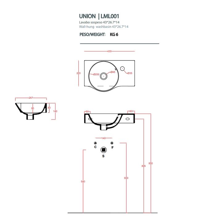 Раковина ArtCeram LAVAMANI UNION LML001 01 00 43 смArtCeram Lavamani Union LML001 01 00 Раковина подвесная, размер 43х22х14 см. С переливом, одно отверстие под смеситель готово справа. Цвет белый глянцевый.