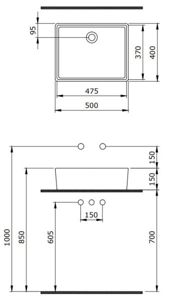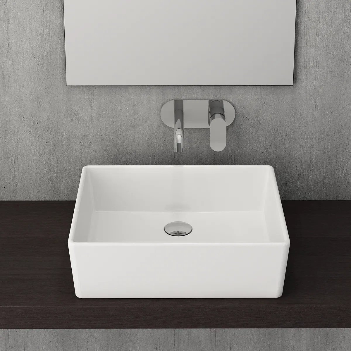 Накладная раковина из санфарфора Berges Ego размером 50х40х15 см.Прямоугольной формы, без отверстия под смеситель, глянцевая белая.Гарантия 10 лет*Донный клапан необходимо приобрести отдельно