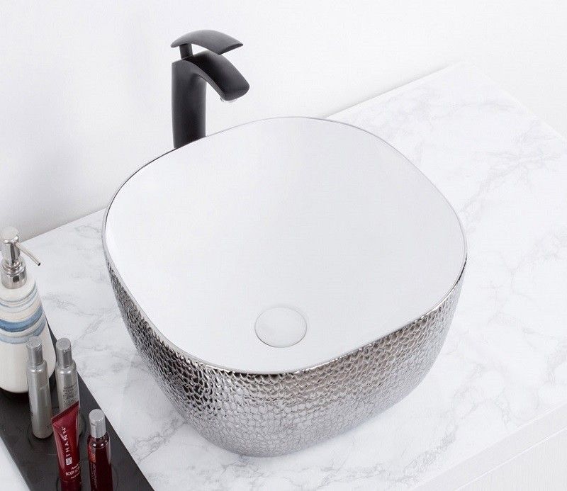 Раковина CeramaLux D1301H021 бело-серая 42 смПодходит для ванных комнат различной планировки в современном стиле и отличается стильной и изящной формой.Материал: санфаянс.В комплекте поставки: раковина.
