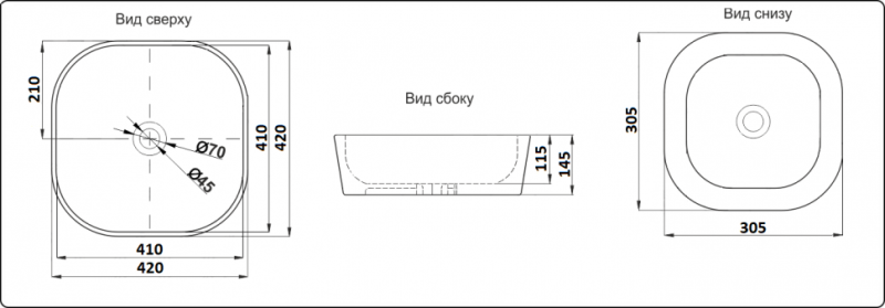 Раковина CeramaLux D1303H020 черная 42 см купить