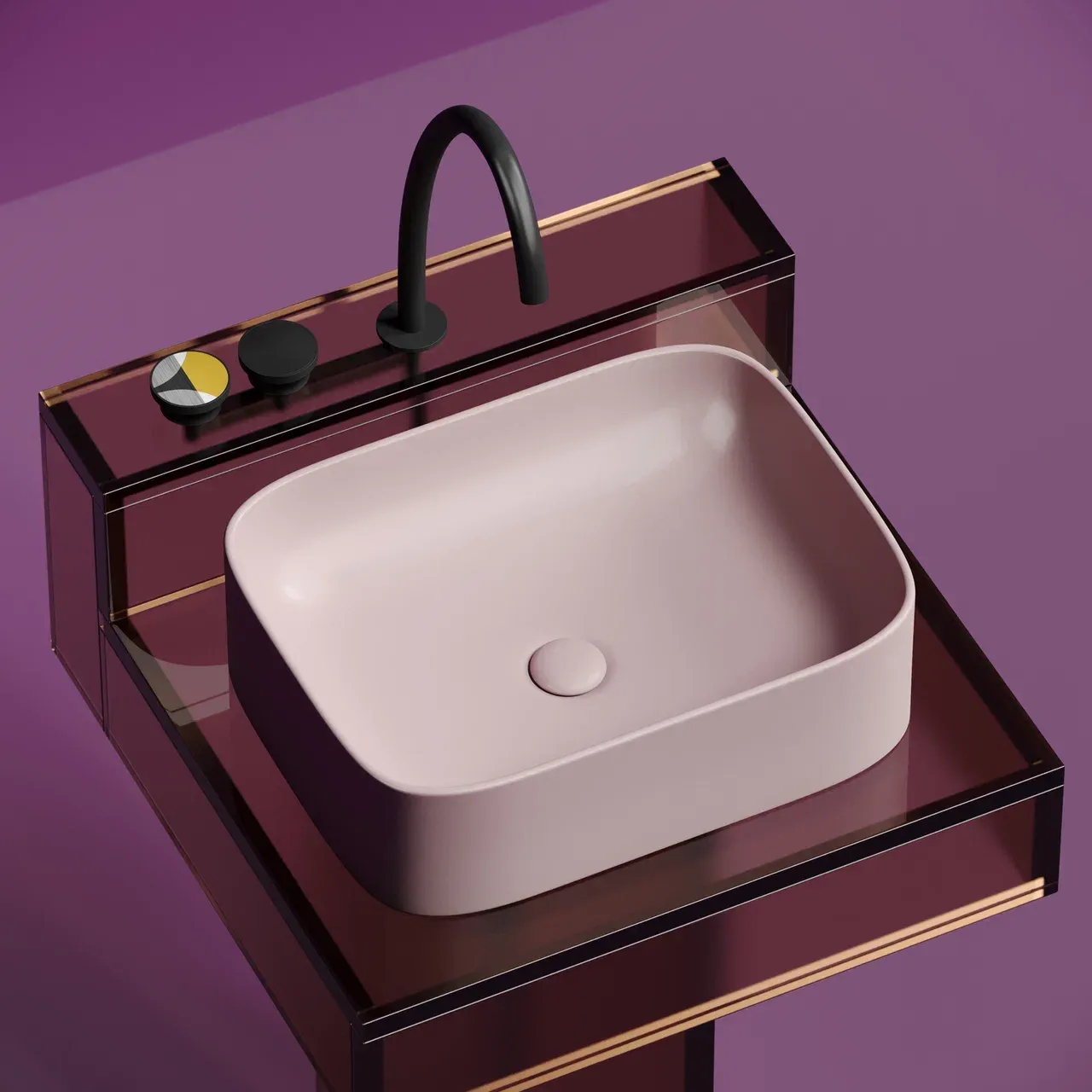 Умывальник чаша накладная прямоугольная (цвет Розовый Матовый) Element 505*380*150мм