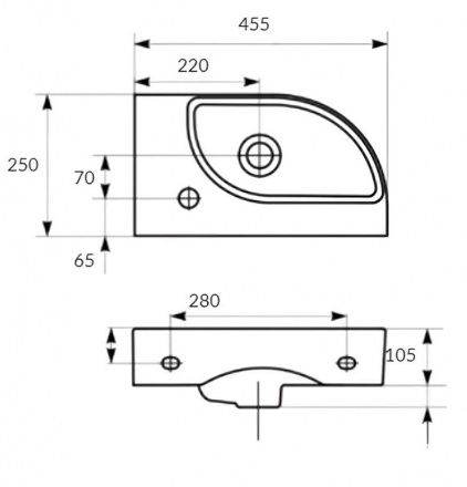 Угловая раковина CAMEO размером 45 см. Отлично подходит для маленьких санузлов.