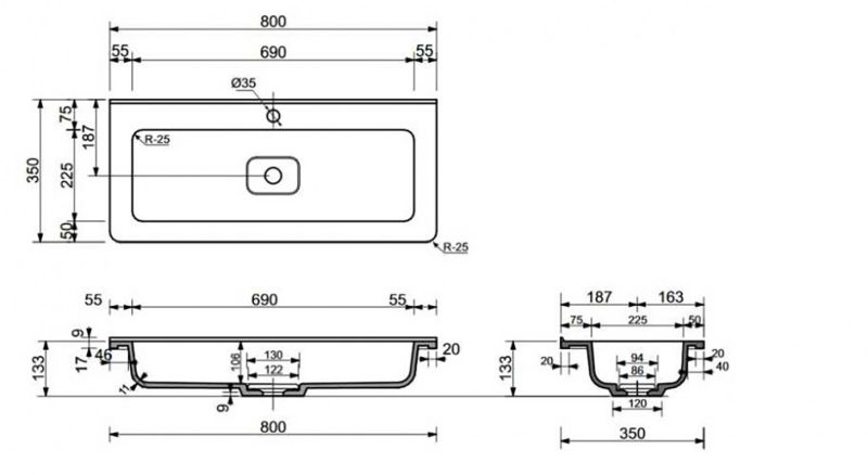 Раковина Style Line Каре Люкс Мини 80 х 35 см, белая, СС-00002297Размеры (ШхВхГ): 80 х 13.3 х 35 см