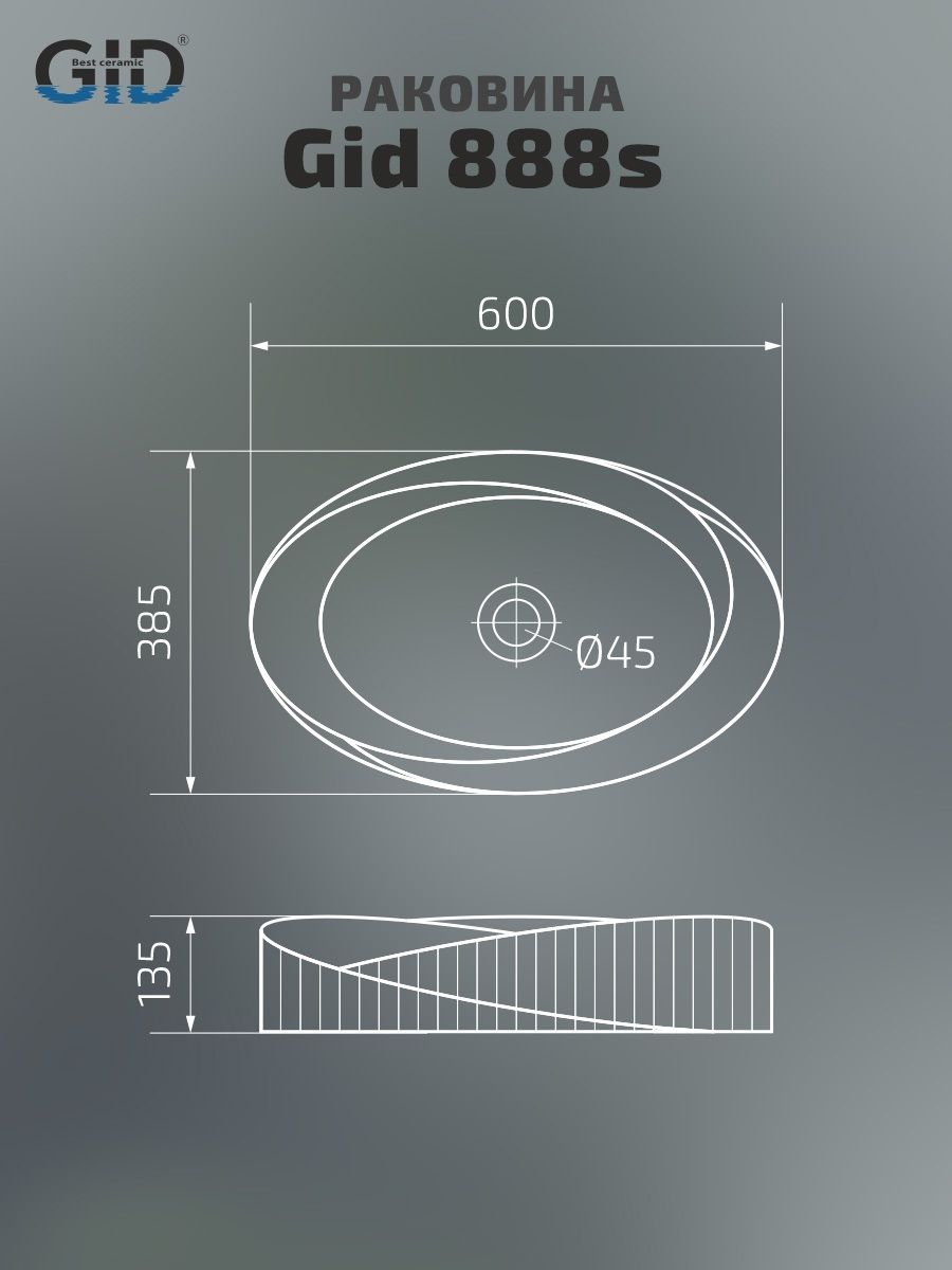 Creativo – это нестандартные формы, рожденные в Испании, сочетаются с европейскими стандартами качества, превращая каждую раковину в уникальное дизайнерское решение. Накладная раковина GID 888s — сочетание элегантного дизайна и практичности для вашей ванной комнаты. Изготовлена из мелкопористой керамики с белоснежным глянцевым покрытием, она придаст интерьеру свежесть и утонченность. Нестандартная овальная форма обеспечивает оптимальное пространство для комфортного использования. Отсутствие отверстия под смеситель подчеркивает минималистичный стиль, а накладной способ монтажа на столешницу облегчает установку и позволяет создать современный облик ванной комнаты.
