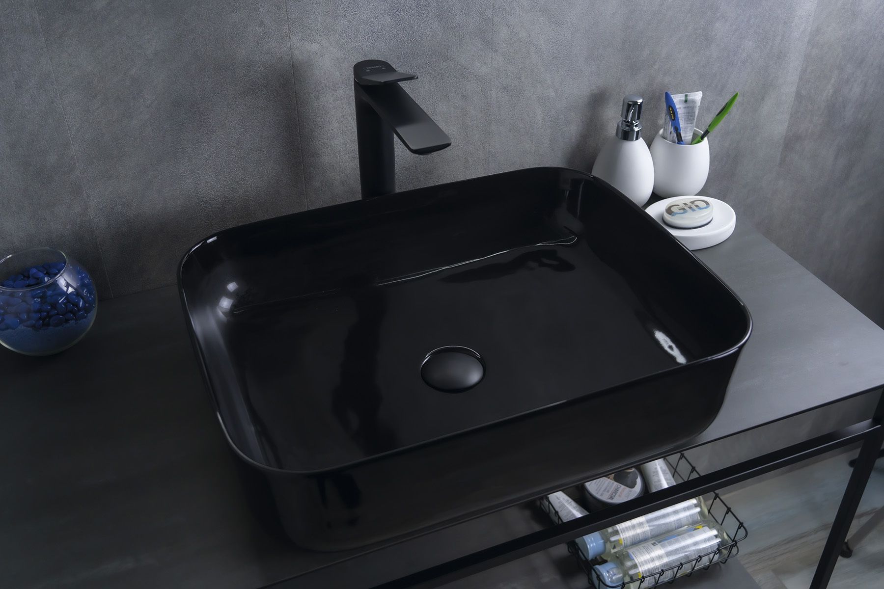 Раковина Gid BL1304 53351 накладная черная глянцевая 50x39x13 купить