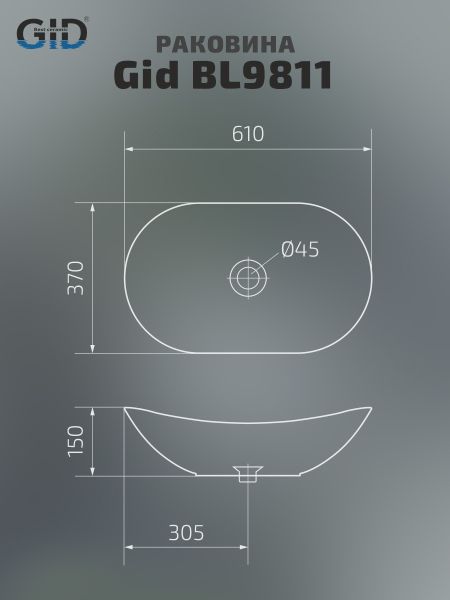 Раковина Gid BL9811 53349 накладная черная глянцевая 61x37x15 купить