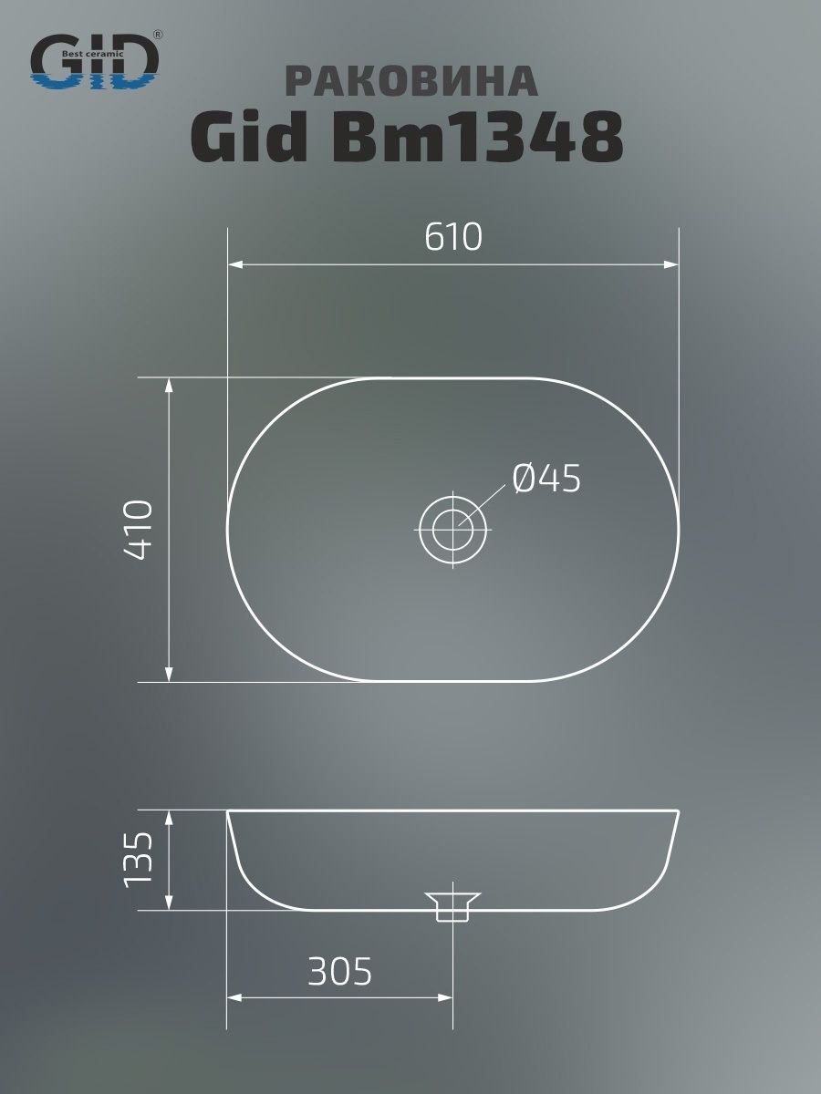 Раковина Gid Bm1348 53355 накладная черная матовая 61x41x13.5 купить