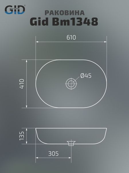 Раковина Gid Bm1348 53355 накладная черная матовая 61x41x13.5