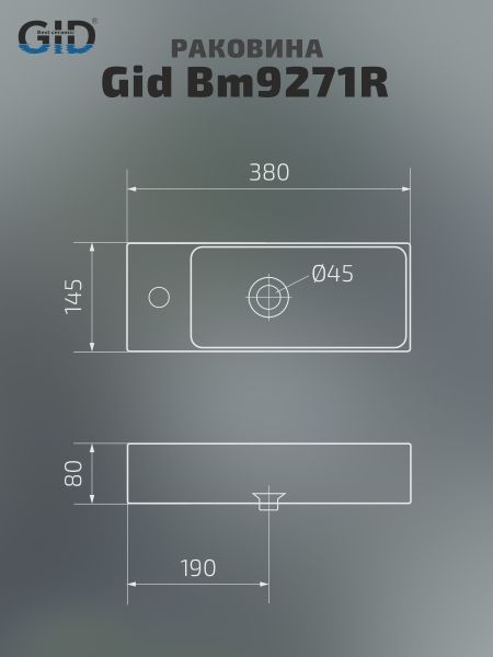 Раковина Gid Bm9271R 62202R подвесная черная матовая 38x14.5x8