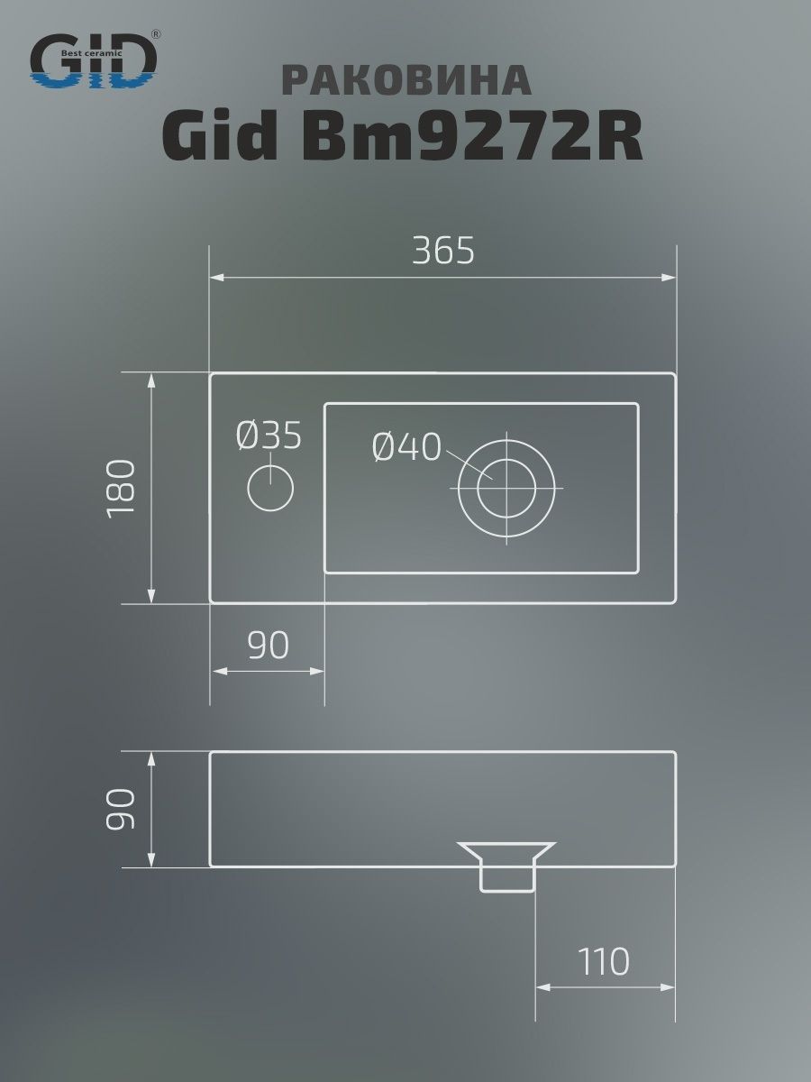 Раковина Gid Bm9272R 62203R подвесная черная матовая 36.5x18x9 купить