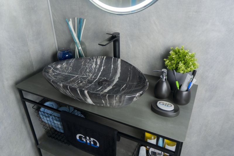 Creativo – это нестандартные формы, рожденные в Испании, сочетаются с европейскими стандартами качества, превращая каждую раковину в уникальное дизайнерское решение. GiD Mnc206 — сочетание элегантного дизайна и практичности для вашей ванной комнаты. Изготовлена из мелкопористой керамики с глянцевой черной поверхностью, имитирующей текстуру натурального камня, она придаст интерьеру свежесть и утонченность. Нестандартная треугольная форма обеспечивает оптимальное пространство для комфортного использования. Отсутствие отверстия под смеситель подчеркивает минималистичный стиль, а накладной способ монтажа на столешницу облегчает установку и позволяет создать современный облик ванной комнаты.