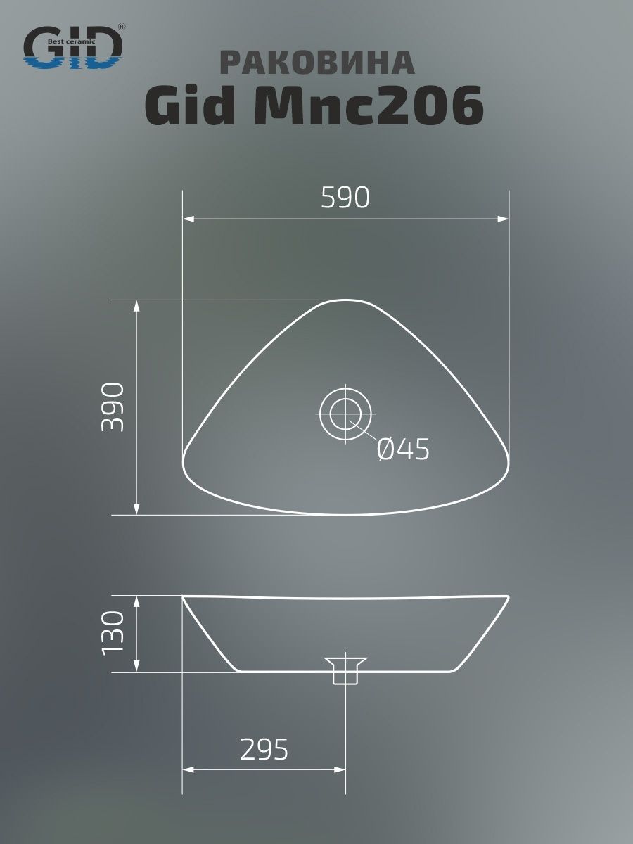 Раковина Gid Mnc206 54427 накладная под камень глянцевая 59x39x13 купить