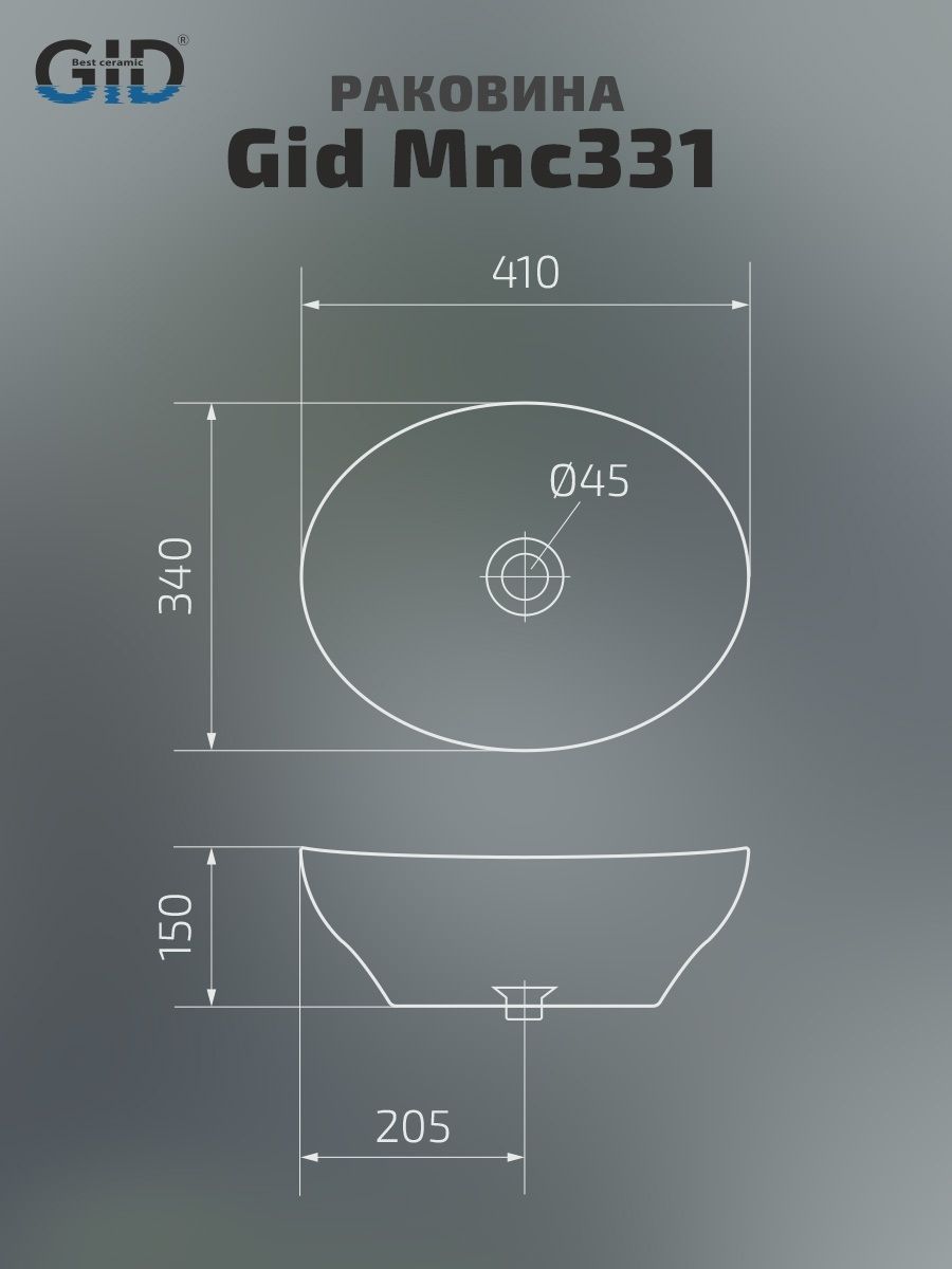 Раковина Gid Mnc331 54430 накладная под камень глянцевая 41x34x15 купить