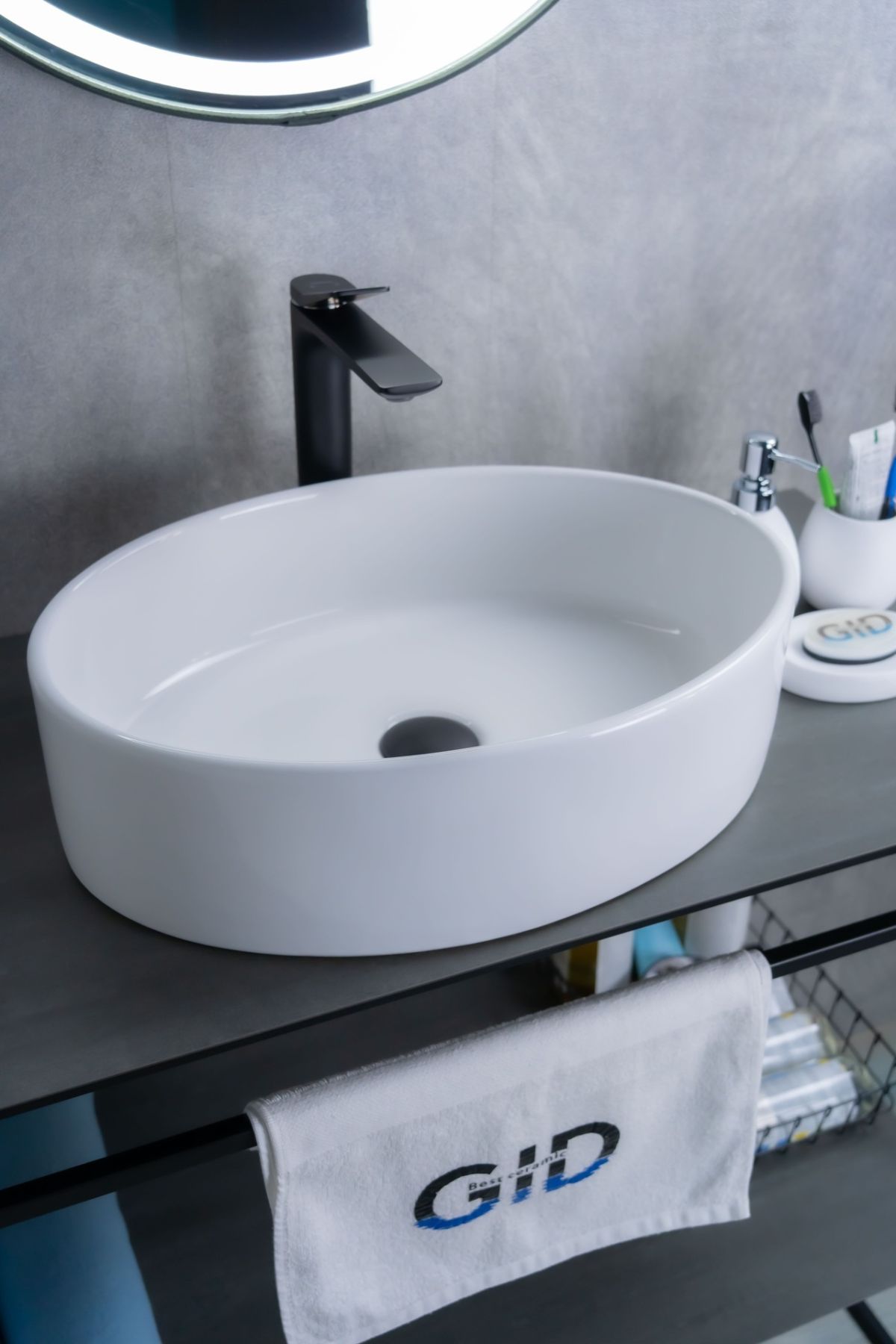 Серия Lago овальной формы — это испанское качество, соответствующее современным европейским требованиям. Накладная раковина GiD N9012 — сочетание элегантного дизайна и практичности для вашей ванной комнаты. Изготовлена из мелкопористой керамики с белым глянцевым покрытием, она придаст интерьеру свежесть и утонченность. Овальная форма обеспечивает оптимальное пространство для комфортного использования. Отсутствие отверстия под смеситель подчеркивает минималистичный стиль, а накладной способ монтажа на столешницу облегчает установку и позволяет создать современный облик ванной комнаты.