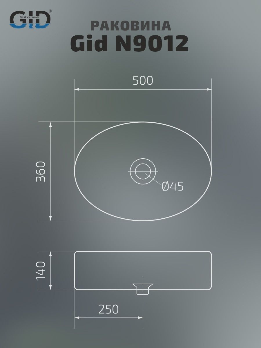 Раковина Gid N9012 51106 накладная белая 50x36x14 купить