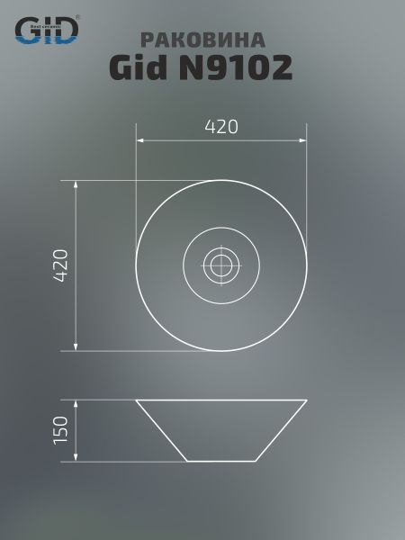 Раковина Gid N9102 51210 накладная белая 42x42x15 купить