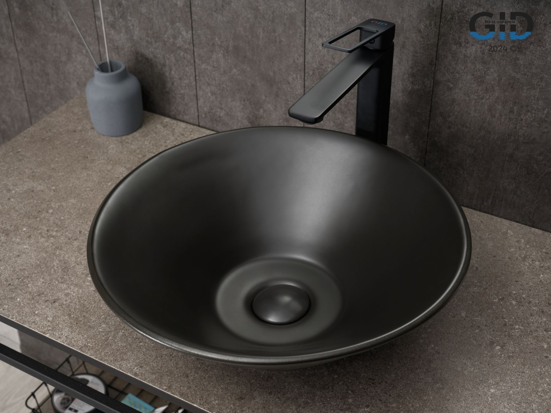 Раковины серии Esfera с круглой чашей — это эталон европейских стандартов и испанского мастерства. Раковина накладная GID N9102bg — идеальный выбор для тех, кто ценит стиль и минимализм в интерьере. Матовая черная керамика с графитовым покрытием придаст вашей ванной комнате современный и неповторимый акцент. Круглая конусообразная форма создает ощущение легкости и гармонии, визуально расширяя пространство. Накладная конструкция не только упрощает монтаж, но и позволяет сэкономить место на столешнице. Благодаря отсутствию отверстия под смеситель раковина позволяет реализовать различные дизайнерские решения по размещению смесителя. Это универсальное и востребованное решение для современных проектов.