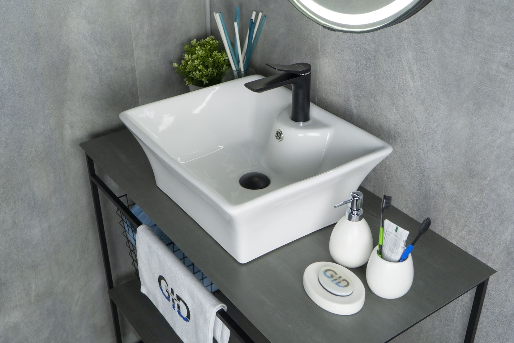 Серия Geometrico с прямоугольной формой: стиль и практичность с испанским качеством и европейскими стандартами. Раковина GiD N9108 - это стильная накладная раковина выполнена из высококачественной мелкопористой керамики с глянцевым покрытием, что обеспечивает долговечность и легкость в уходе. Прямоугольная форма придает ей современный и элегантный вид, а эргономичная чаша удобна для повседневного использования. Накладная конструкция позволяет легко установить раковину на столешнице, предоставляя дополнительное пространство вокруг. Оснащена отверстием под смеситель, что делает её удобным выбором для современной ванной комнаты.
