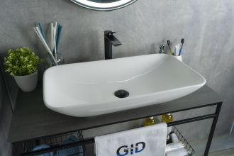 Серия Geometrico с прямоугольной формой: стиль и практичность с испанским качеством и европейскими стандартами. Накладная раковина GiD N9122 — сочетание элегантного дизайна и практичности для вашей ванной комнаты. Изготовлена из мелкопористой керамики с белым глянцевым покрытием, она придаст интерьеру свежесть и утонченность. Прямоугольная форма обеспечивает оптимальное пространство для комфортного использования. Отсутствие отверстия под смеситель подчеркивает минималистичный стиль, а накладной способ монтажа на столешницу облегчает установку и позволяет создать современный облик ванной комнаты.