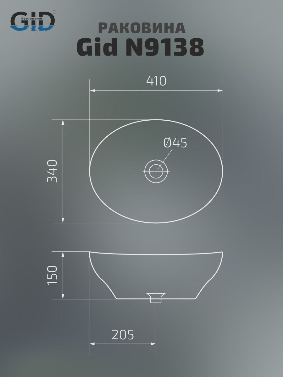 Серия Lago овальной формы — это испанское качество, соответствующее современным европейским требованиям. Накладная раковина GiD N9138 без отверстия под смеситель, изготовлена из мелкопористой керамики в белом глянцевом цвете. Гладкое стекловидное покрытие позволяет раковине быть устойчивой к загрязнениям. Овальная форма и компактные размеры обеспечивают комфортное использование и легкую установку