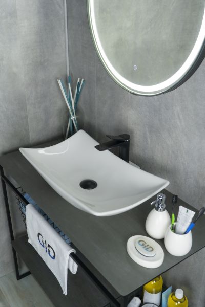 Creativo – это нестандартные формы, рожденные в Испании, сочетаются с европейскими стандартами качества, превращая каждую раковину в уникальное дизайнерское решение. Раковина GiD N9176 Эта стильная накладная раковина выполнена из высококачественной мелкопористой керамики с глянцевым покрытием, что обеспечивает долговечность и легкость в уходе. Трапециевидная форма придает ей стильный и современный вид, а эргономичная чаша удобна для повседневного использования. Накладная конструкция позволяет легко установить раковину на столешнице, предоставляя дополнительное пространство вокруг. Оснащена отверстием под смеситель, что делает её удобным выбором для современной ванной комнаты.