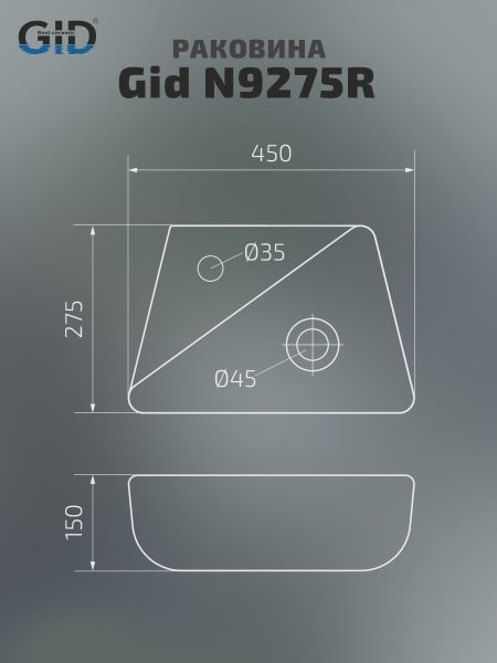 Раковина Gid N9275R 61107R подвесная белая 45x27.5x15 купить