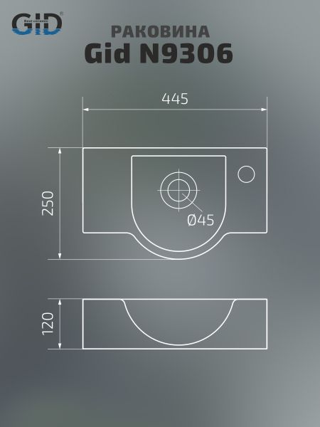Раковина Gid N9306 61109 подвесная белая 44.5x25x12 купить