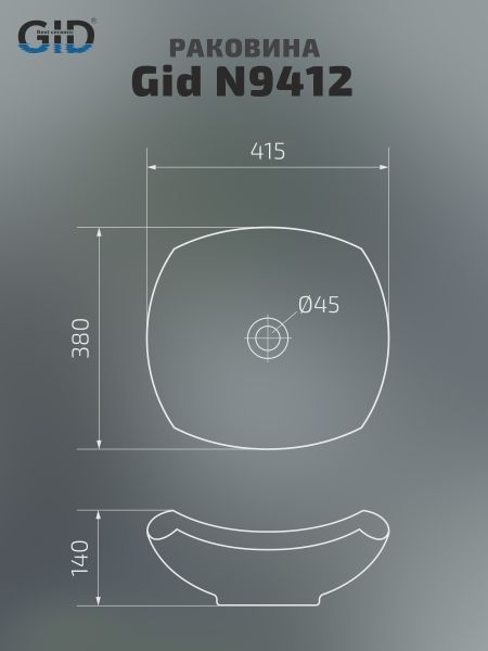 Раковина Gid N9412 51191 накладная белая 41.5x38x14