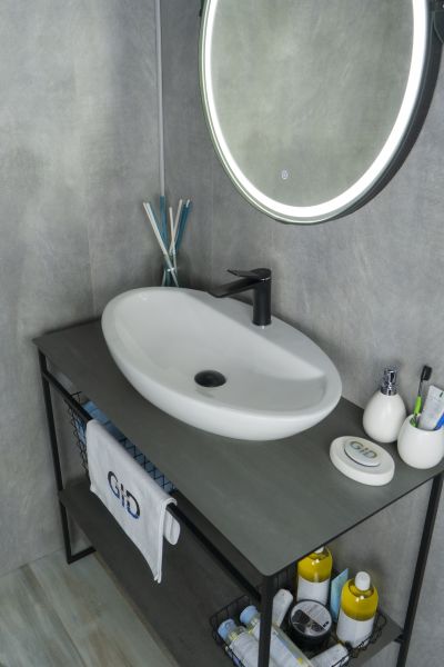 Серия Lago овальной формы — это испанское качество, соответствующее современным европейским требованиям. Раковина накладная GiD N9435 - это стильная модель, выполненная из высококачественной мелкопористой керамики с белым глянцевым покрытием, что обеспечивает долговечность и легкость в уходе. Овальная форма придает ей изысканность и элегантность, а эргономичная чаша удобна для повседневного использования. Накладная конструкция позволяет легко установить раковину на столешнице, предоставляя дополнительное пространство вокруг. Оснащена отверстием под смеситель, что делает её удобным выбором для современной ванной комнаты.