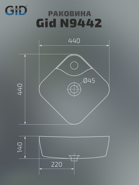Раковина Gid N9442 51153 накладная белая 44x44x14 купить