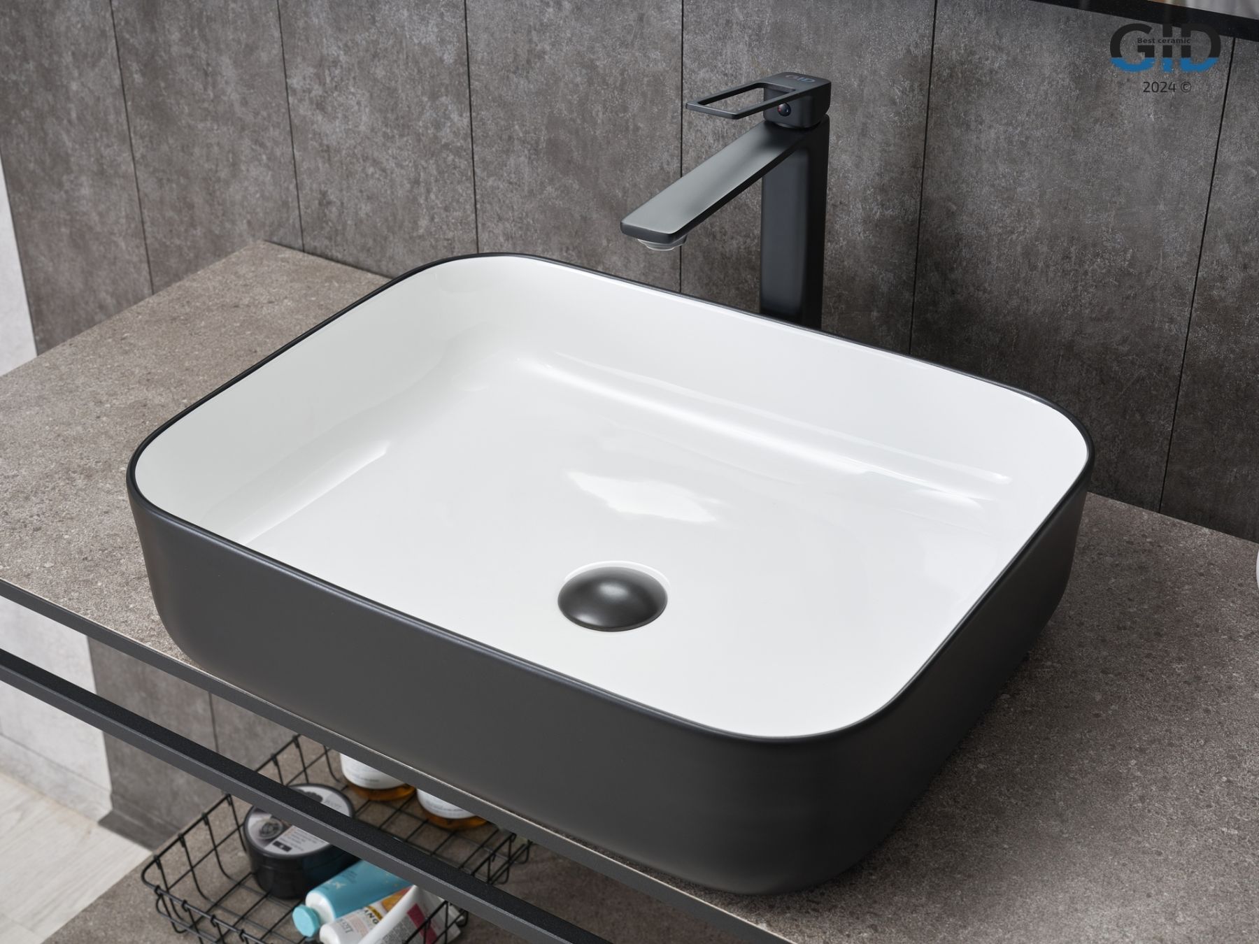 Раковина Gid Nc366 52205 накладная белая / черная 50x39x13
