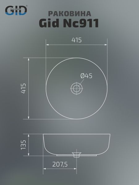Раковина Gid Nc911 52224 накладная черная матовая 41.5x41.5x13.5 купить