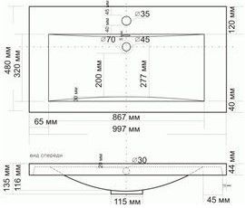 • Диаметр отверстия под смеситель: 35 мм