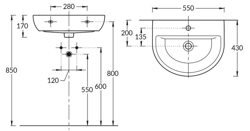 • Отверстия под смеситель: