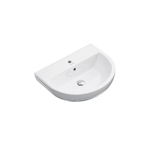 Подвесная раковина в белом глянцевом цвете с переливным отверстием и хромированной накладкой, ширина 55 см. Может использоваться с подвесными тумбами PRO
