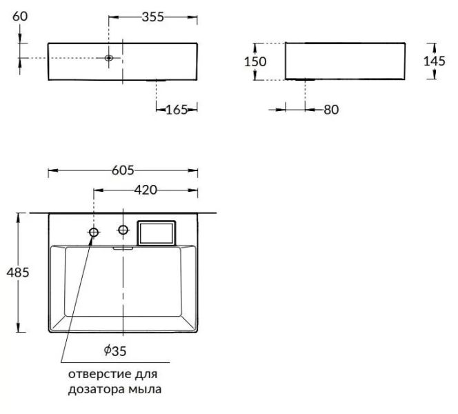 Раковина исполнена в современном геометричном дизайне, чистота которого усилена благодаря Beauty Drain — технологии невидимого слива, который смещён из центра чаши к её задней стенке. При этом отверстие перелива спрятано в небольшой бокс, закрытый керамической крышкой. Это делает наклонное дно чаши идеально ровным и упрощает процесс уборки. Данная модель содержит отверстие под смеситель, а также отверстие для установки встраиваемого дозатора для мыла. Раковина шириной 60 см используется только с тумбой LOGICA 60, монтаж без мебели не предусмотрен.