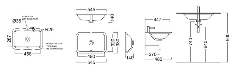 • Отверстия под смеситель:
