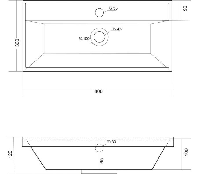 Раковина встраивается на мебель, в столешницу и на подстолье. Верхний слой представляет собой декоративно-защитное покрытие - импортный сантехнический гелькоут. Донный клапан отсутствует. В комплектацию входит декоративная накладка на слив.