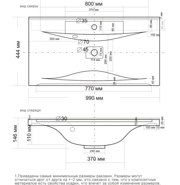 Отверстия под смеситель:1