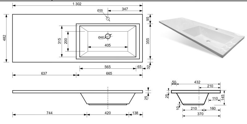 Раковина над стиральной машиной Эстет Dallas silk ФР-00014936 П 130см белый