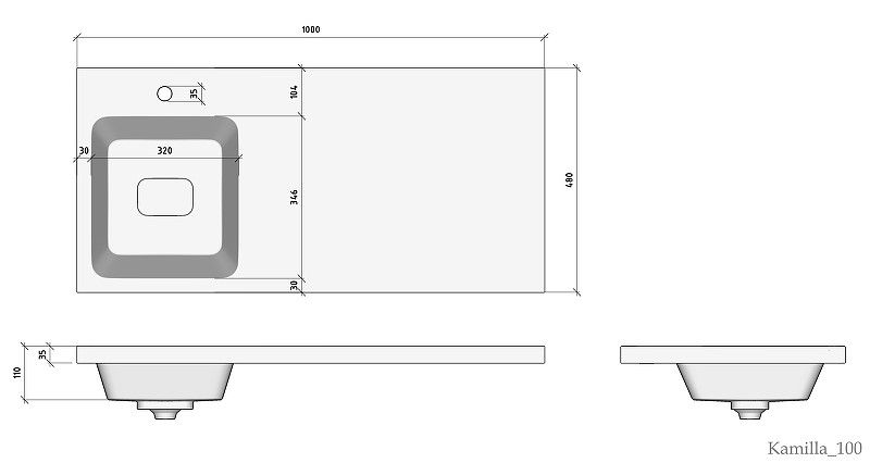 Одно отверстие под смеситель по центру чаши