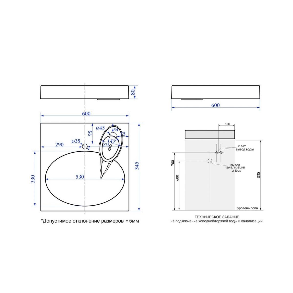 Раковина над стиральной машиной Maretti EN13SM69-844, белая. Материал: литьевой мрамор. Размер: 60x54,5x8. Форма: квадратная.