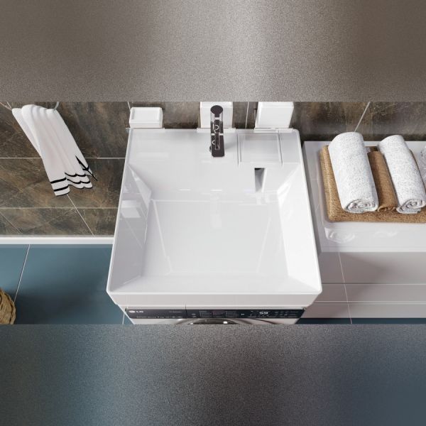 Раковина над стиральной машиной Maretti KA13SM12-844, белая. Материал: литьевой мрамор. Размер: 60x50x10. Форма: квадратная. Максимальная глубина стиральной машины 38 см.