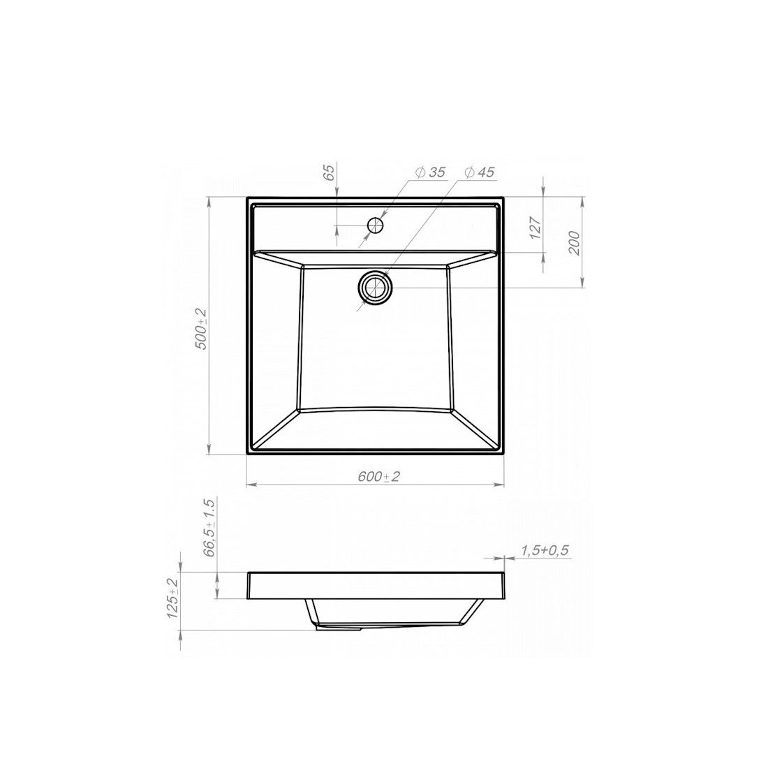 Раковина над стиральной машиной Maretti SF13SM07-844, белая. Материал: литьевой мрамор. Размер: 60x50x12,5. Форма: квадратная.