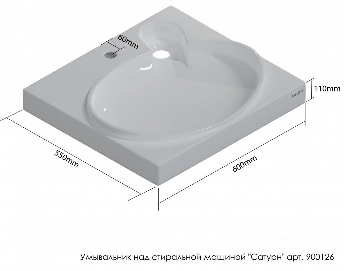 Раковина над стиральной машиной СанТа Сатурн 900126 60см белый