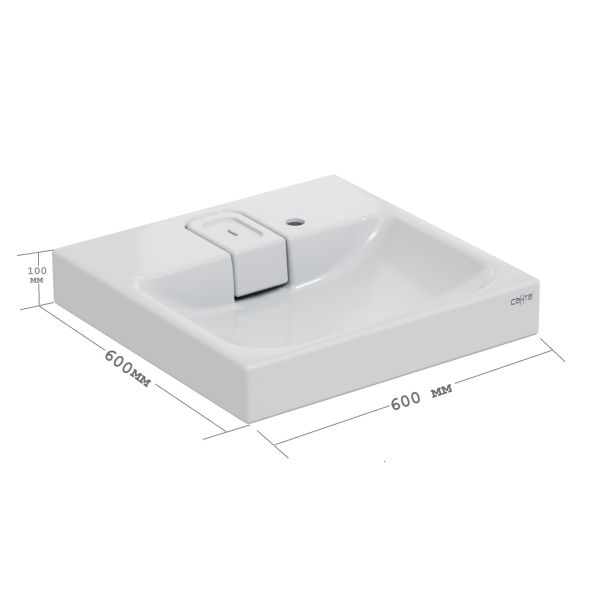 Чаша раковины имеет прямоугольную форму. На широкой задней поверхности раковины очень удобно размещать гигиенические принадлежности.